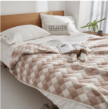 Покрывало изготовлено из хлопковой ткани в жаккардовом плетении нитей. Белоснежный кант обрамляет это легкое покрывало, создавая дополнительное очарование. Эта модель в пастельных бело-голубых тонах будет прекрасно смотреться в нежном, светлом интерьере к